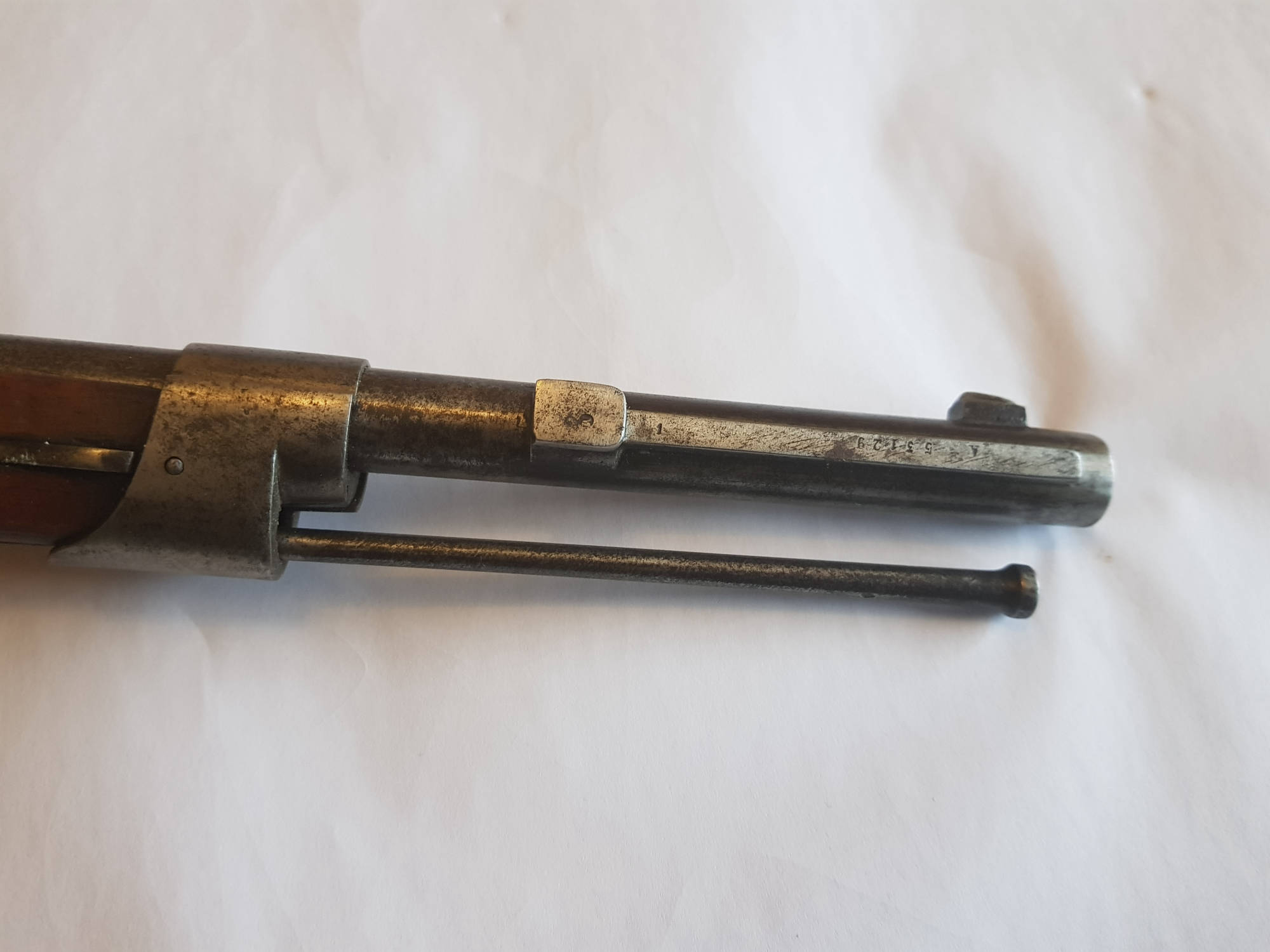 Länge des Gewehres 130,5 cm. Kammerstengel gerade, Kaliber Zug 11,5 ... 11,6/ Kaliber Feld 11,15